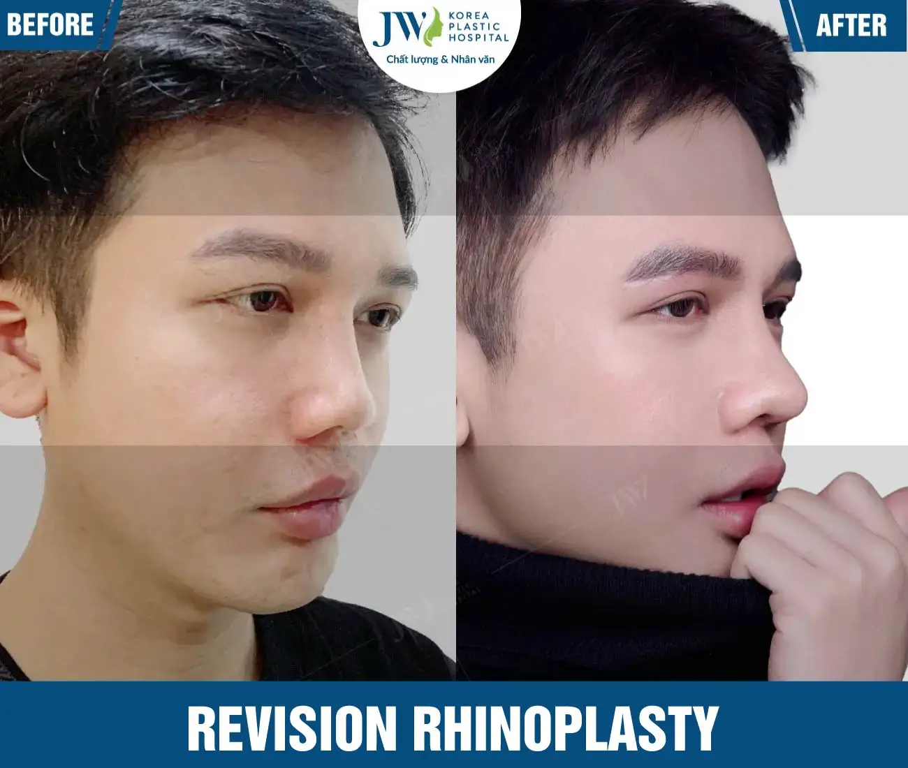 Rhinoplasty at JW reconstructs the nose using autologous cartilage for the tip and artificial cartilage for the bridge. Invented by Dr. Nguyen Phan Tu Dung, the S-Line technique customizes each nose shape to correct common issues like flat, upturned, or humped noses. It also restores failed rhinoplasty cases, ensuring a refined and natural look.